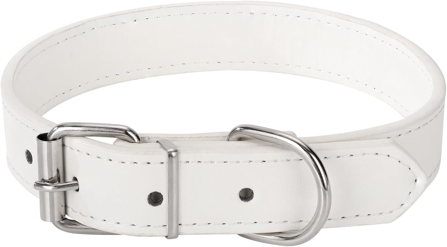 White Soft Leather Dog Collar for Small,Medium, Large Dog, Comfortable and Adjustable (Wide: 0.55” for Dog’s Neck: 9”~12”, White, S)