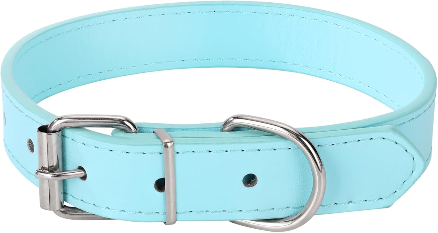 Light Blue Soft Leather Dog Collar for Small,Medium, Large Dog, Comfortable and Adjustable (Wide: 0.55” for Dog’s Neck: 9”~12”, Light Blue, S)