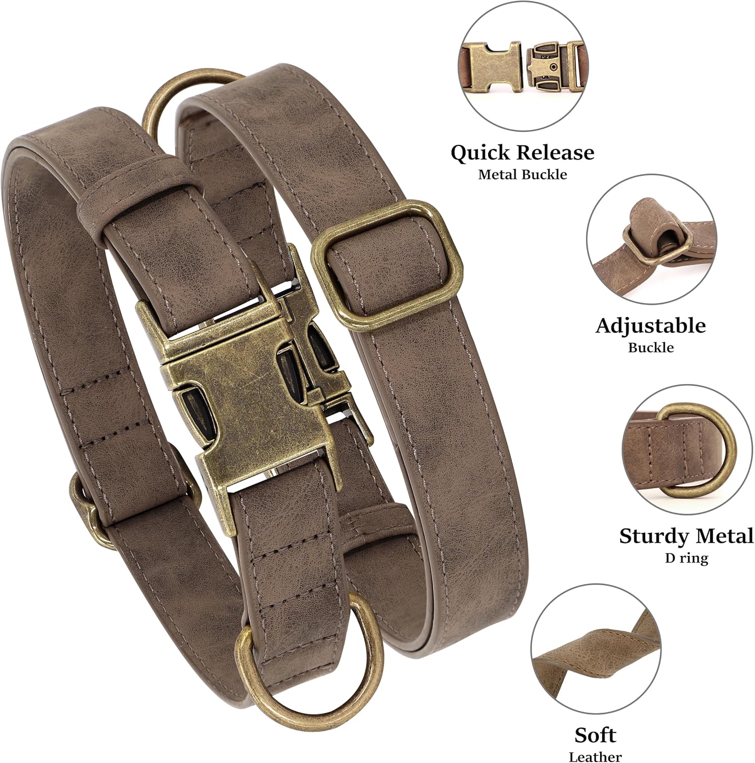Soft PU Leather Dog Collar, Stylish Quick Released Dog Collars for Small Dogs, Easy Clean Adjustable Pet Collar for Daily Walking, Light Brown, S Fit 10-16″ Neck