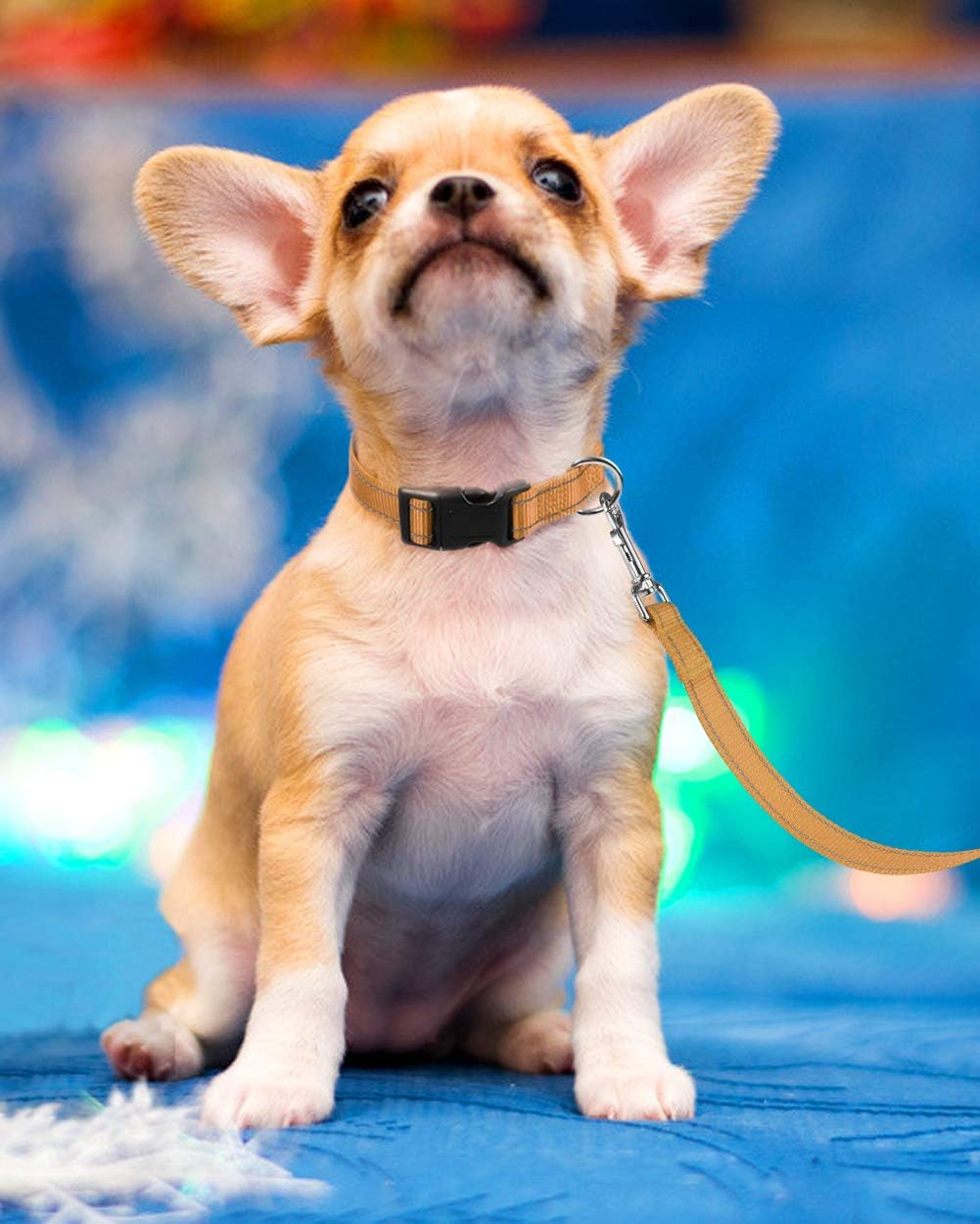 Reflective Dog Collar, Sturdy Nylon Collars for Puppy and Extra Small Girl and Boy Dogs, Adjustable Dog Collar with Quick Release Buckle,Khaki,3/8″ Width