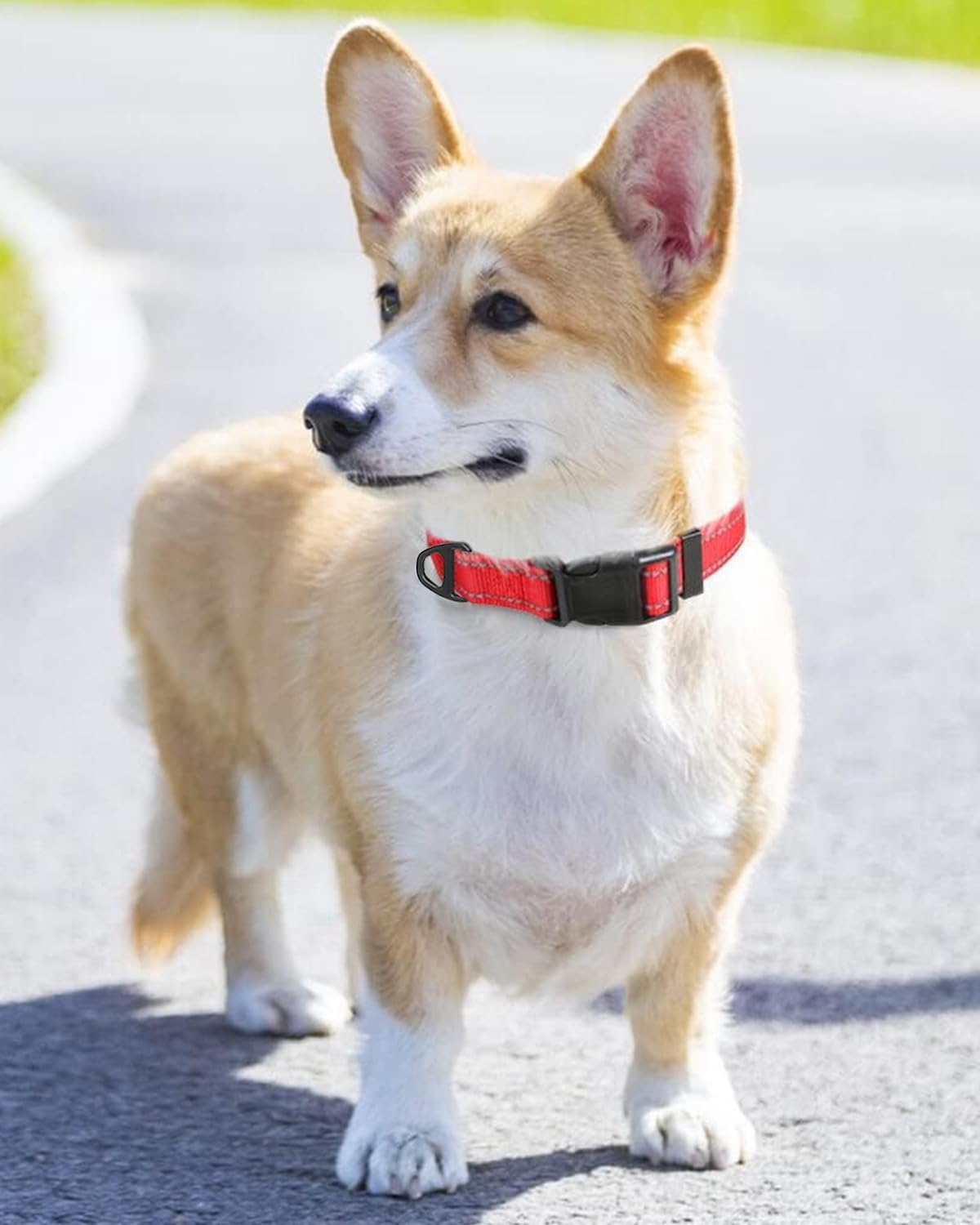 Reflective Adjustable Dog Collars for Puppy Small Medium Large Dogs, Thin Nylon Webbing and Quick Release Plastic Buckle(Red, Medium)