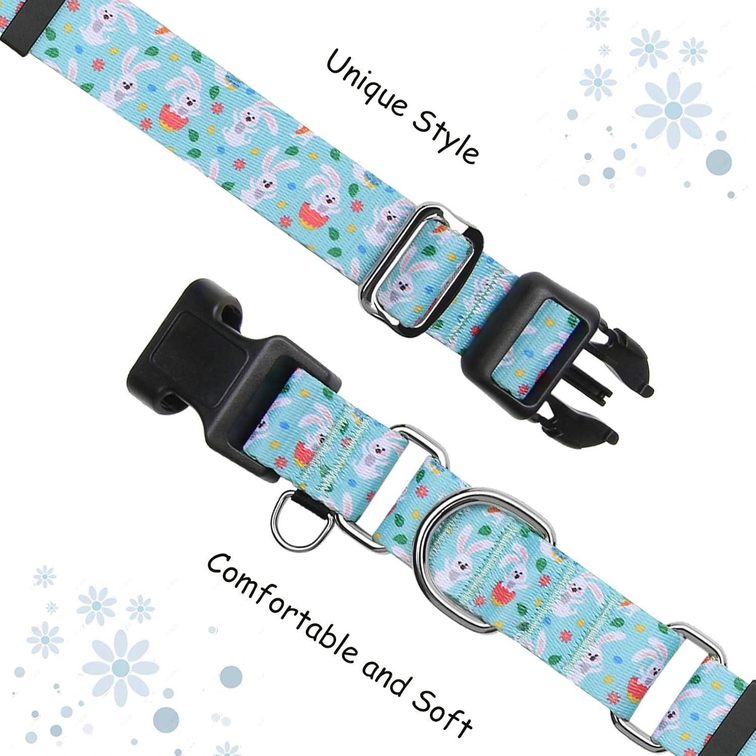 Easter Martingale Collar for Dogs with Buckle Bunny Dog Collar Adjustable Soft Nylon Girl Dog Collars for Large Dogs, Green Rabbit