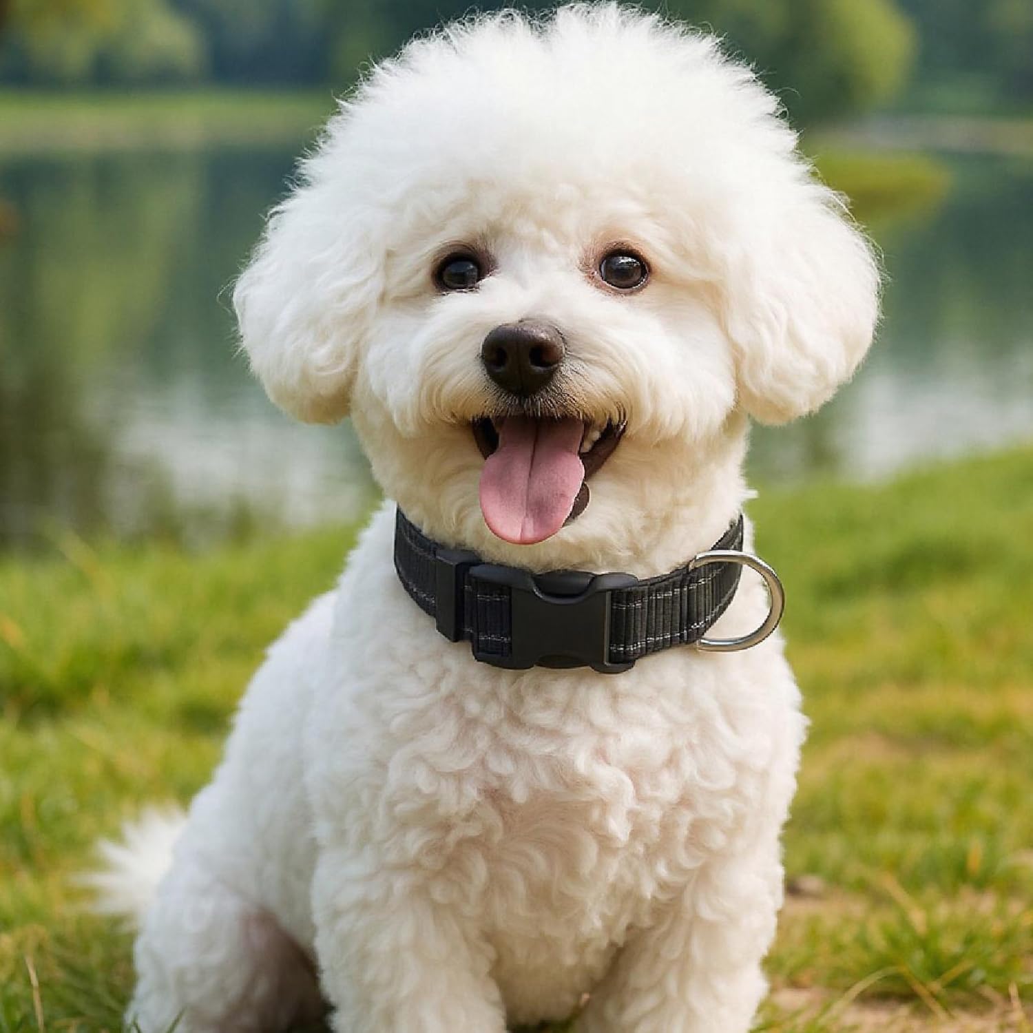 Dog Collar for Small Medium Dogs with Buckle, Breathable Adjustable Nylon Reflective Dog Collars, Black/Medium