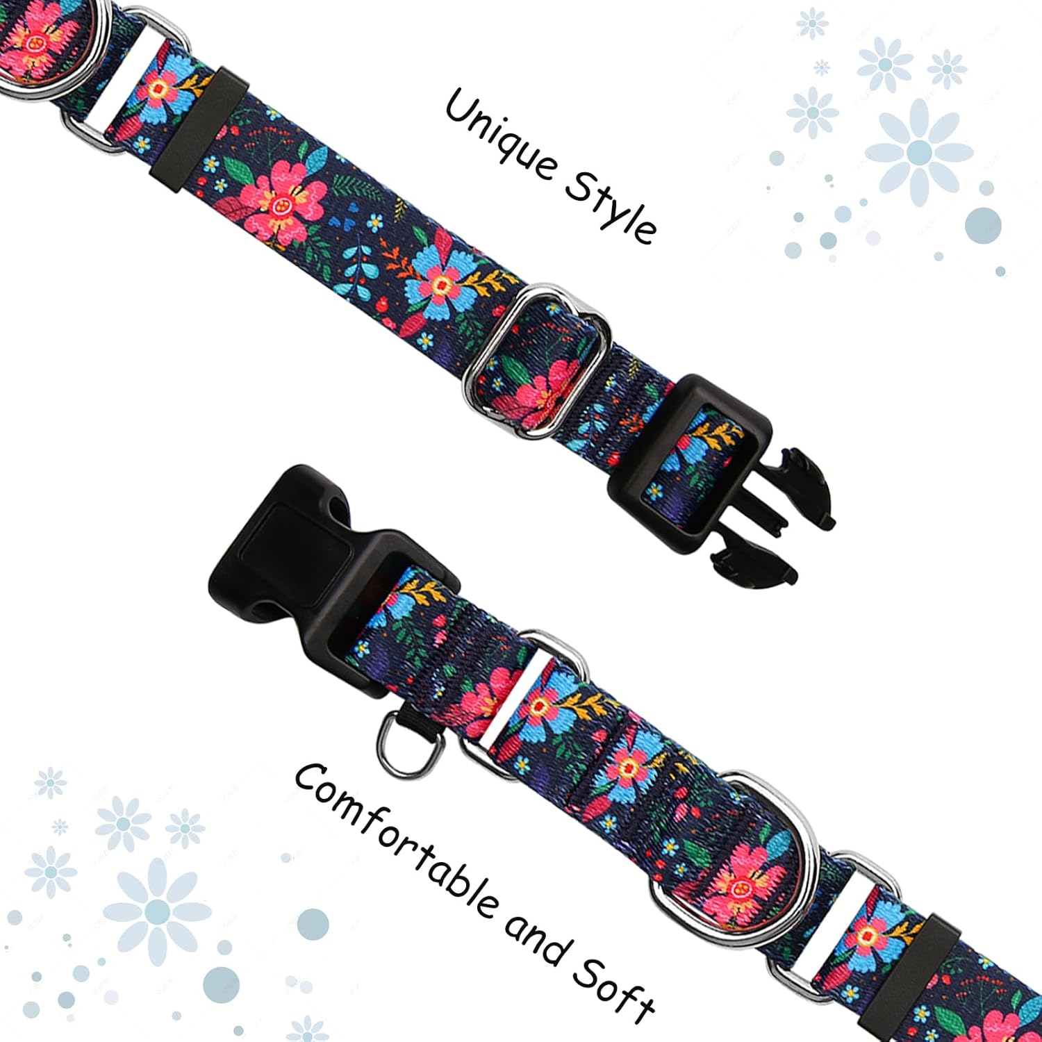Reflective Dog Collar for Medium Dogs, Cute Flower Theme Adjustable Heavy-Duty Nylon Puppy Collar for Boy and Girl Female, Soft Pet Accessories with Quick Release Buckle, Colorful Floral