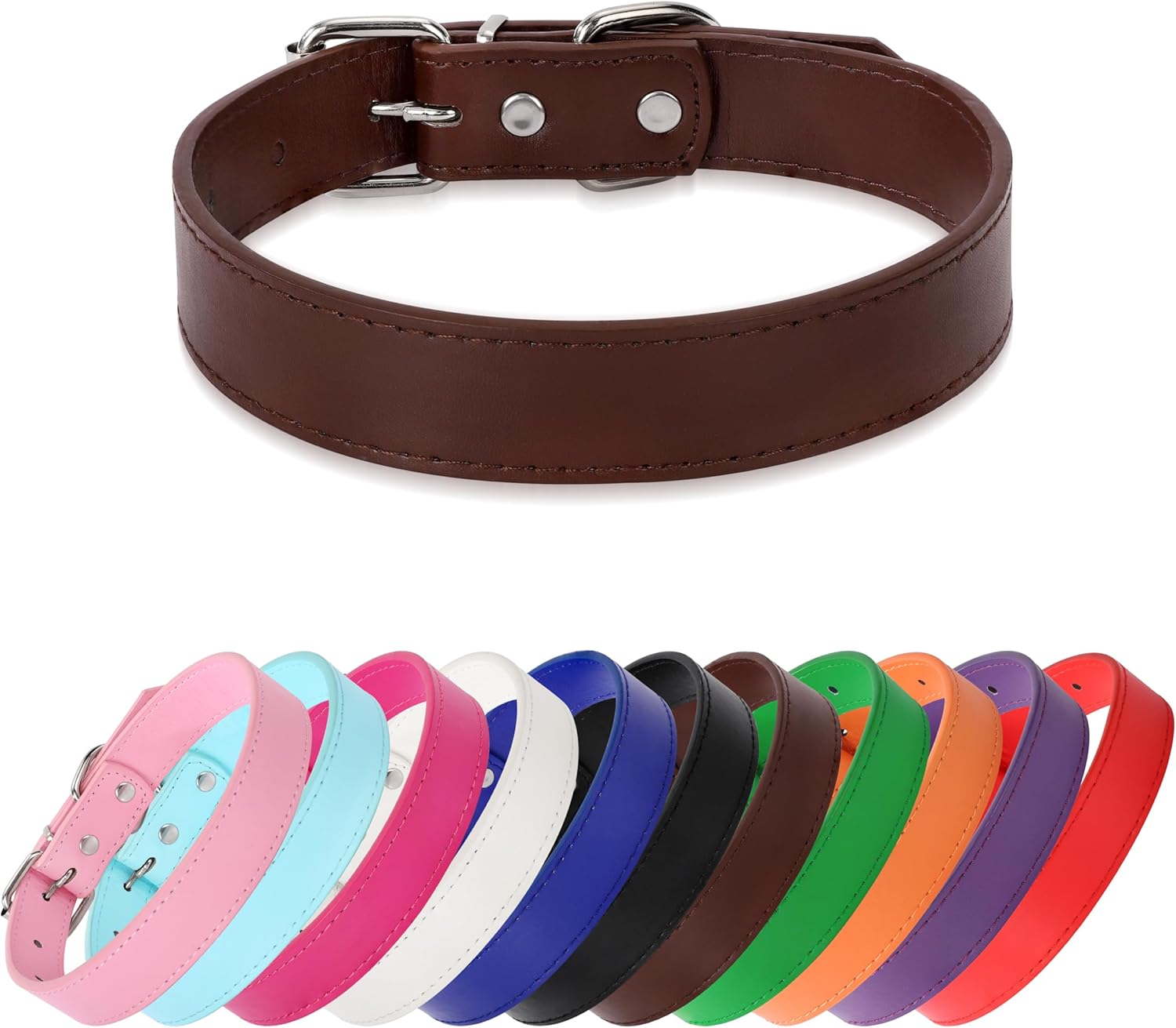 Brown Soft Leather Dog Collar for Small,Medium, Large Dog, Comfortable and Adjustable (Wide: 0.55” for Dog’s Neck: 9”~12”, Brown, S)
