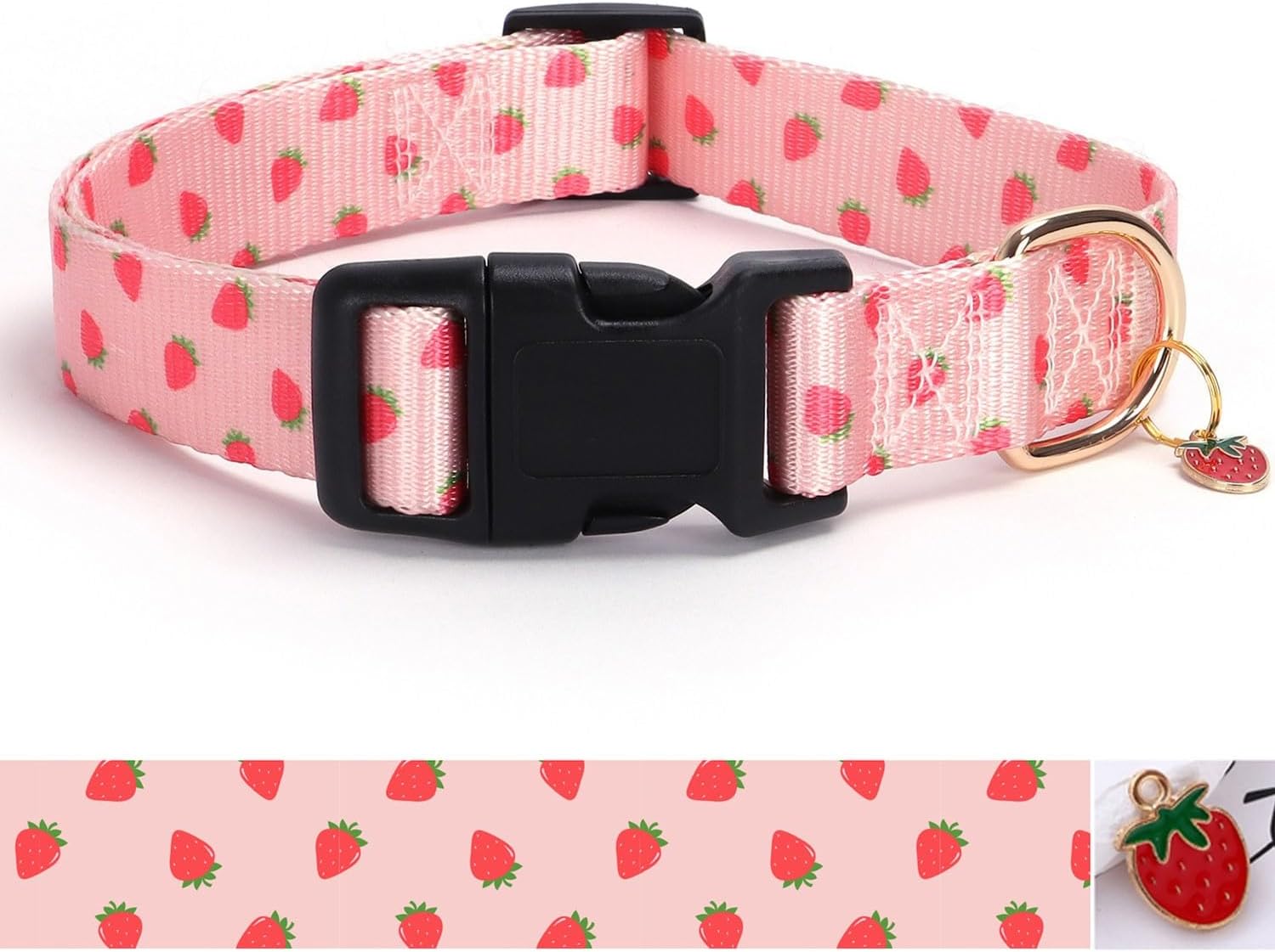 Pink Strawberry Pattern Dog Collar with Buckle Adjustable Safety Nylon Collars for Small Medium Large Dogs, Cute Stylish Girl Boy Christmas Dog Collar(Pink Strawberry,S)
