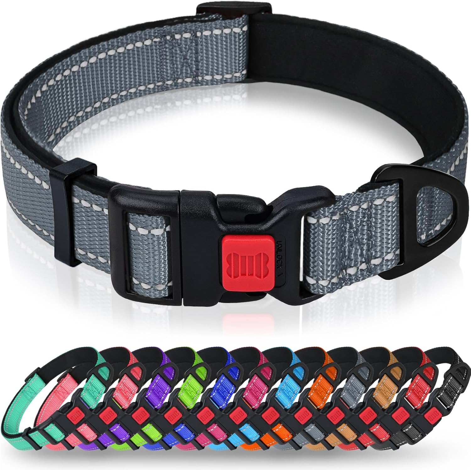 Reflective Dog Collar with Safety Locking Buckle, Adjustable Nylon Pet Collars for Extra Large Dogs Female Male, Grey, XL