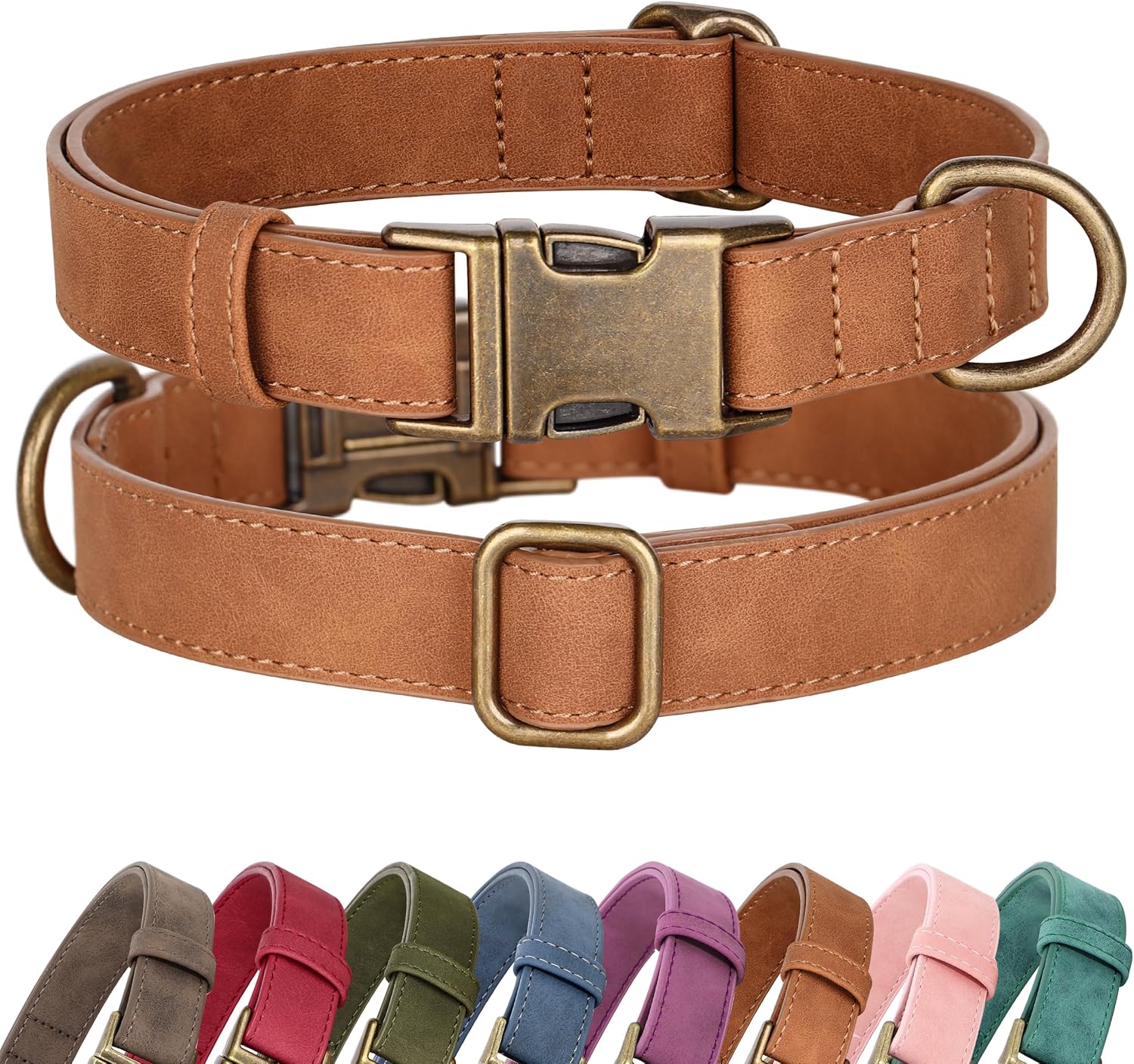 Soft PU Leather Dog Collar, Stylish Quick Released Dog Collars for Small Dogs, Easy Clean Adjustable Pet Collar for Daily Walking, Light Brown, S Fit 10-16″ Neck