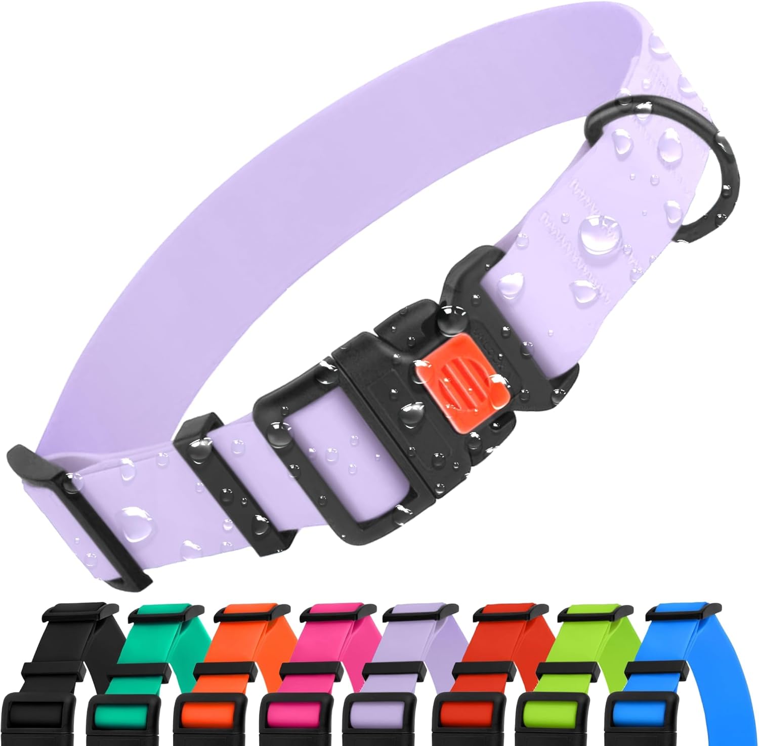Waterproof Dog Collar – Silicone, Plastic Collar, Odor-Resistant, Easy to Clean, for Large, Medium, Small Dogs – Adjustable Collar with Breakaway Buckle (Neck Fit 12″-16″, Lilac)