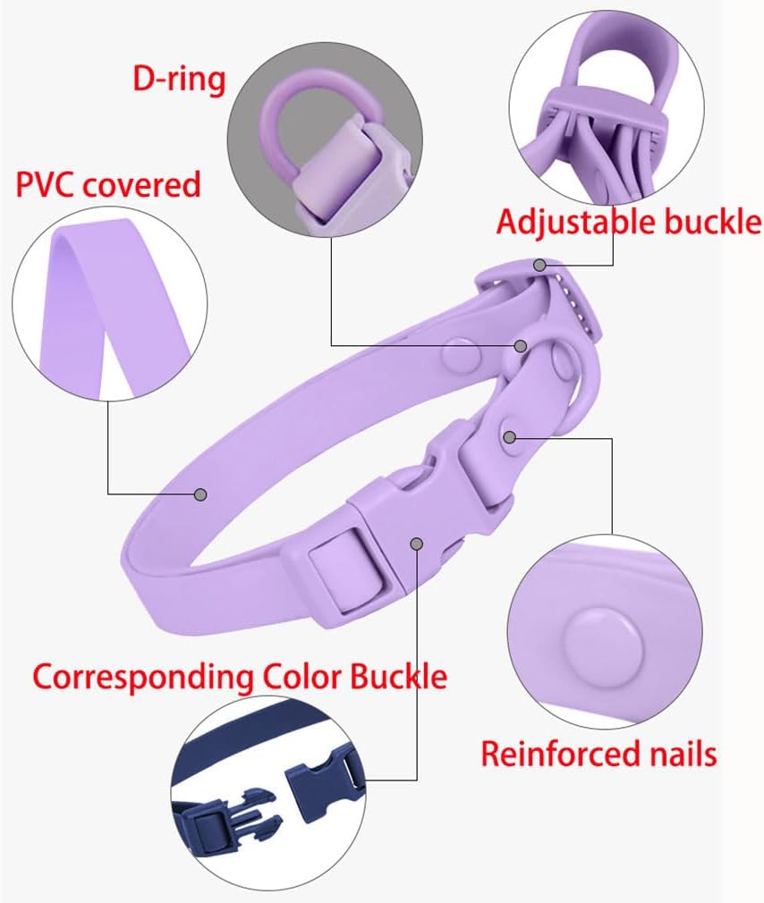 Waterproof Dog Collar and Leash Set, Purple Silicone Plastic PVC Rubber Washable Quick Release Buckle Water Swim Girl Puppy Collars for Small Medium Large Pet Female Dogs, S