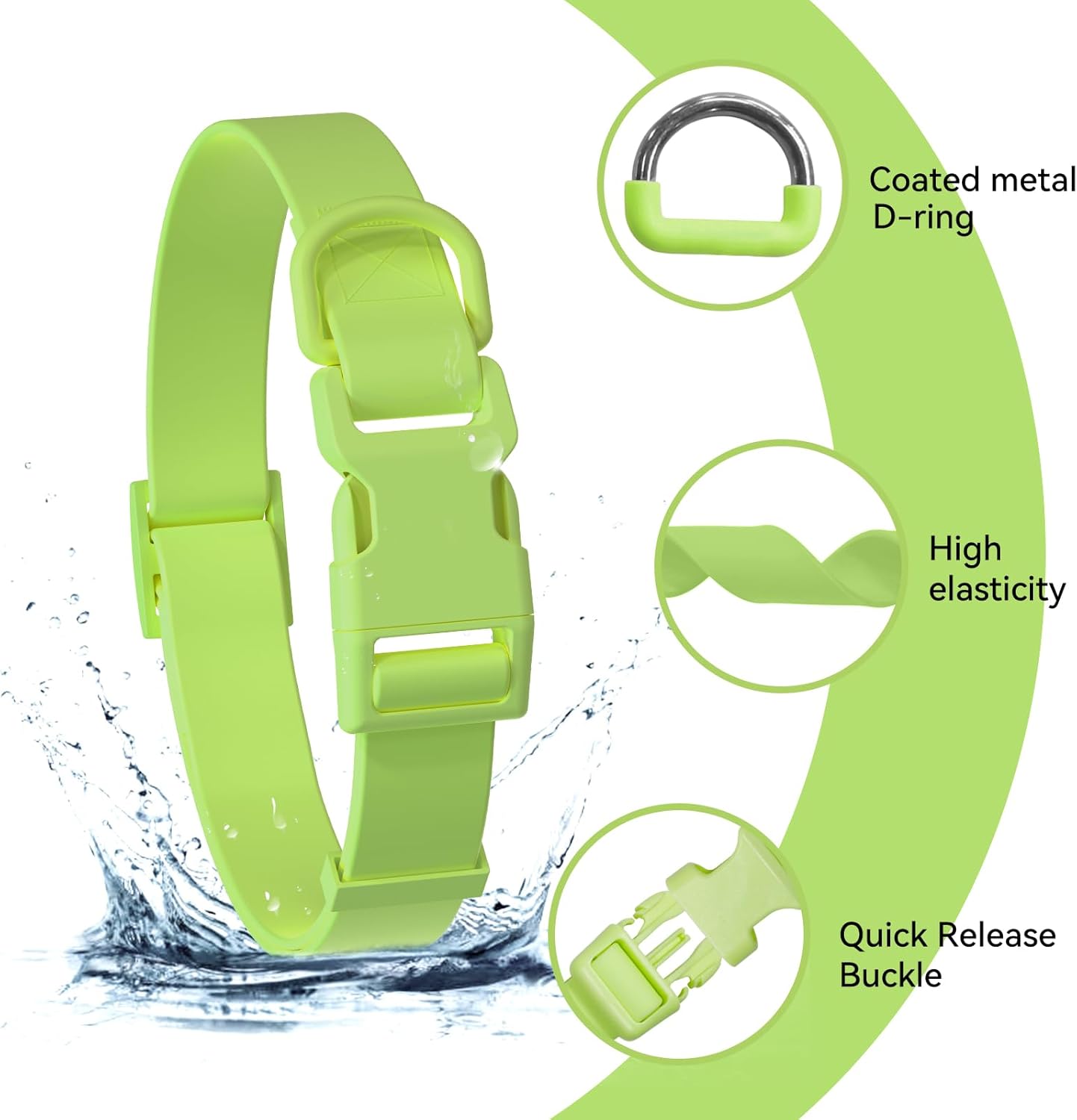 Waterproof Dog Collar – Silicone, Plastic Collar, Odor-Resistant, Easy to Clean, for Large, Medium, Small Dogs – Adjustable Collar with Breakaway Buckle (Neck Fit 12″-16″, Lime Green)