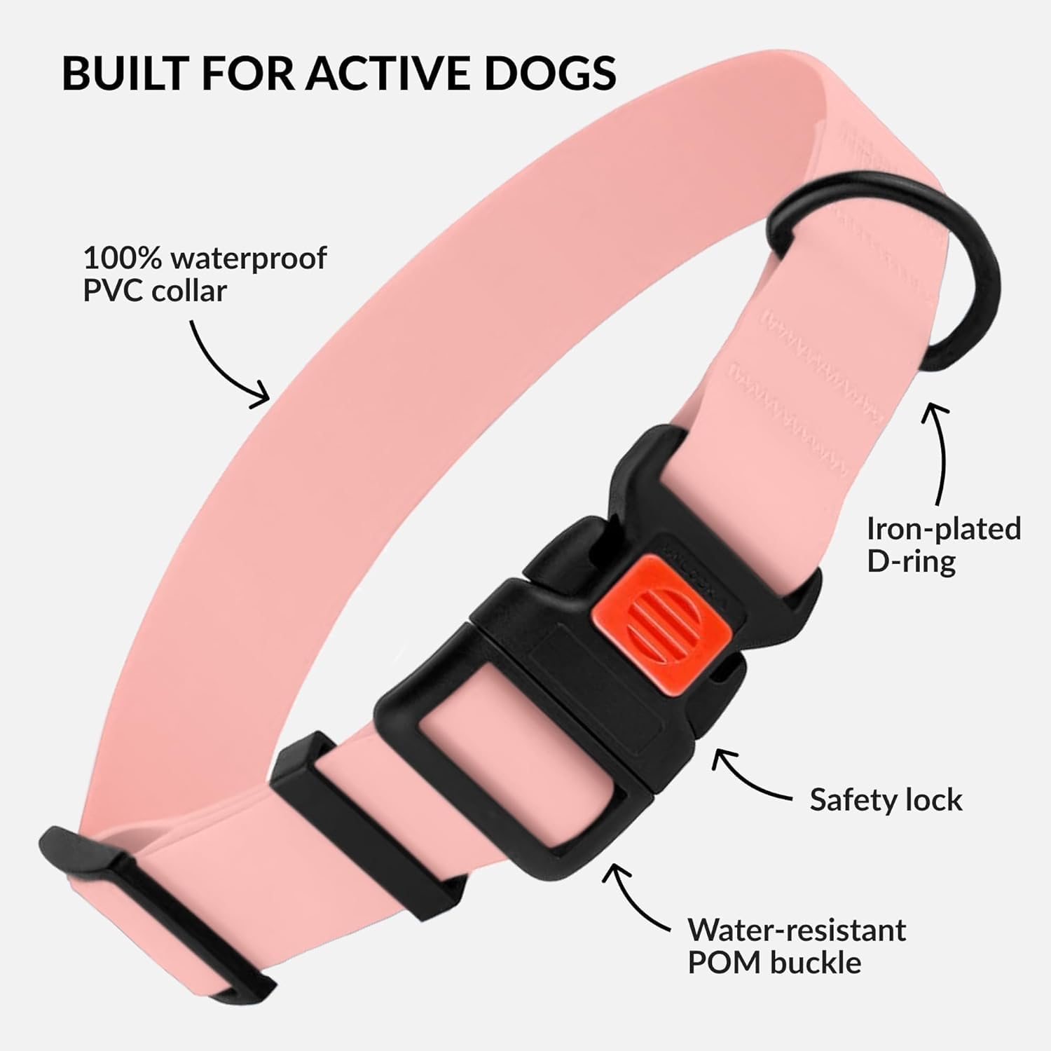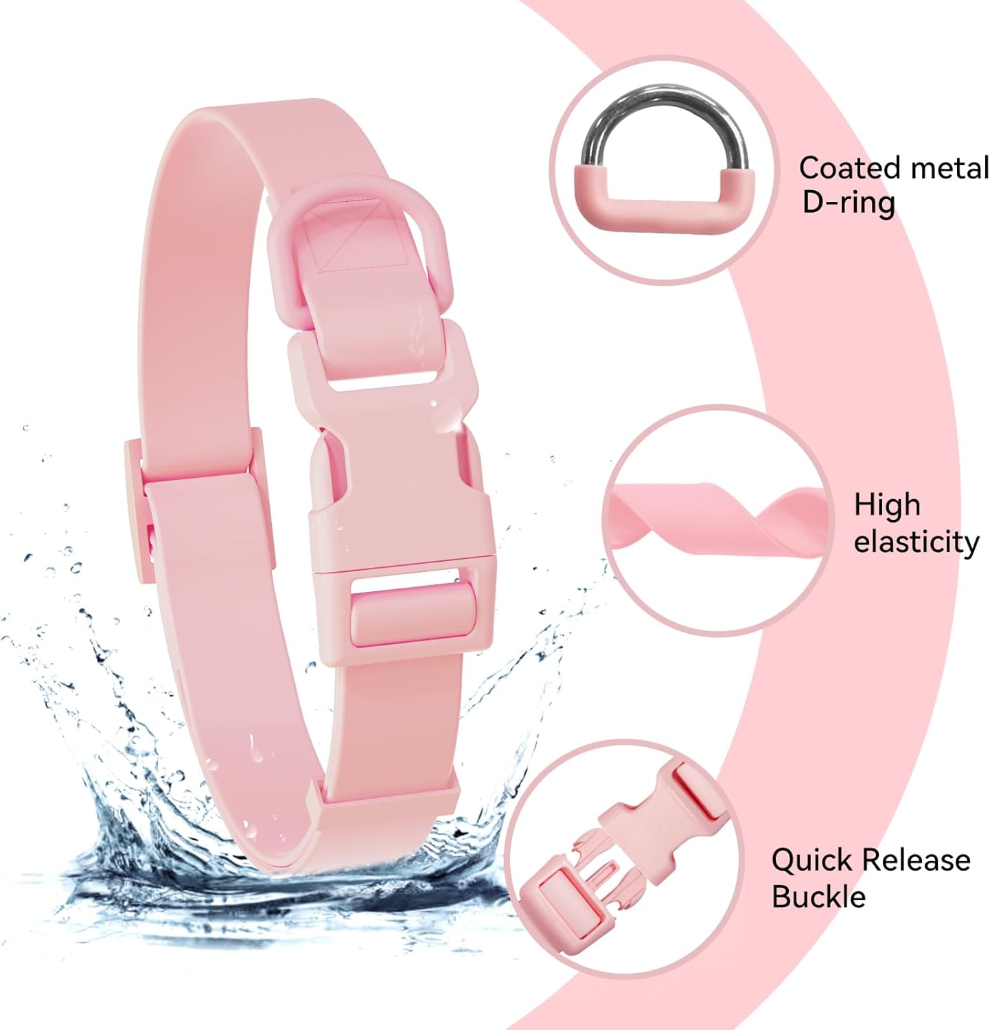 Waterproof Dog Collar – Silicone, Plastic Collar, Odor-Resistant, Easy to Clean, for Large, Medium, Small Dogs – Adjustable Collar with Breakaway Buckle (Neck Fit 12″-16″, Baby Pink)